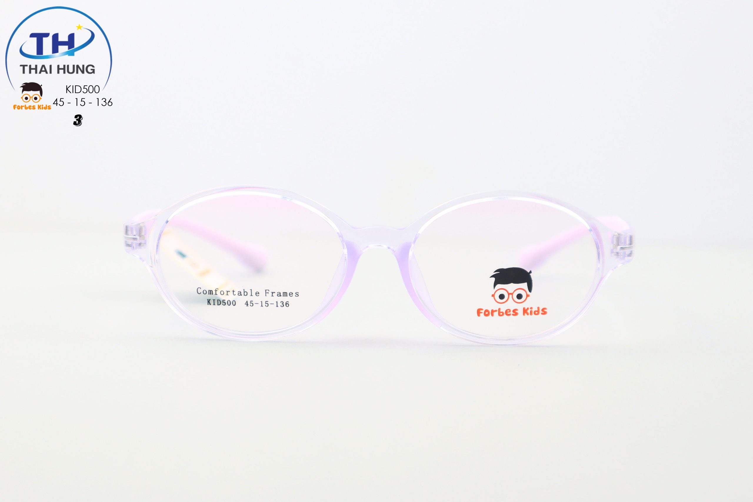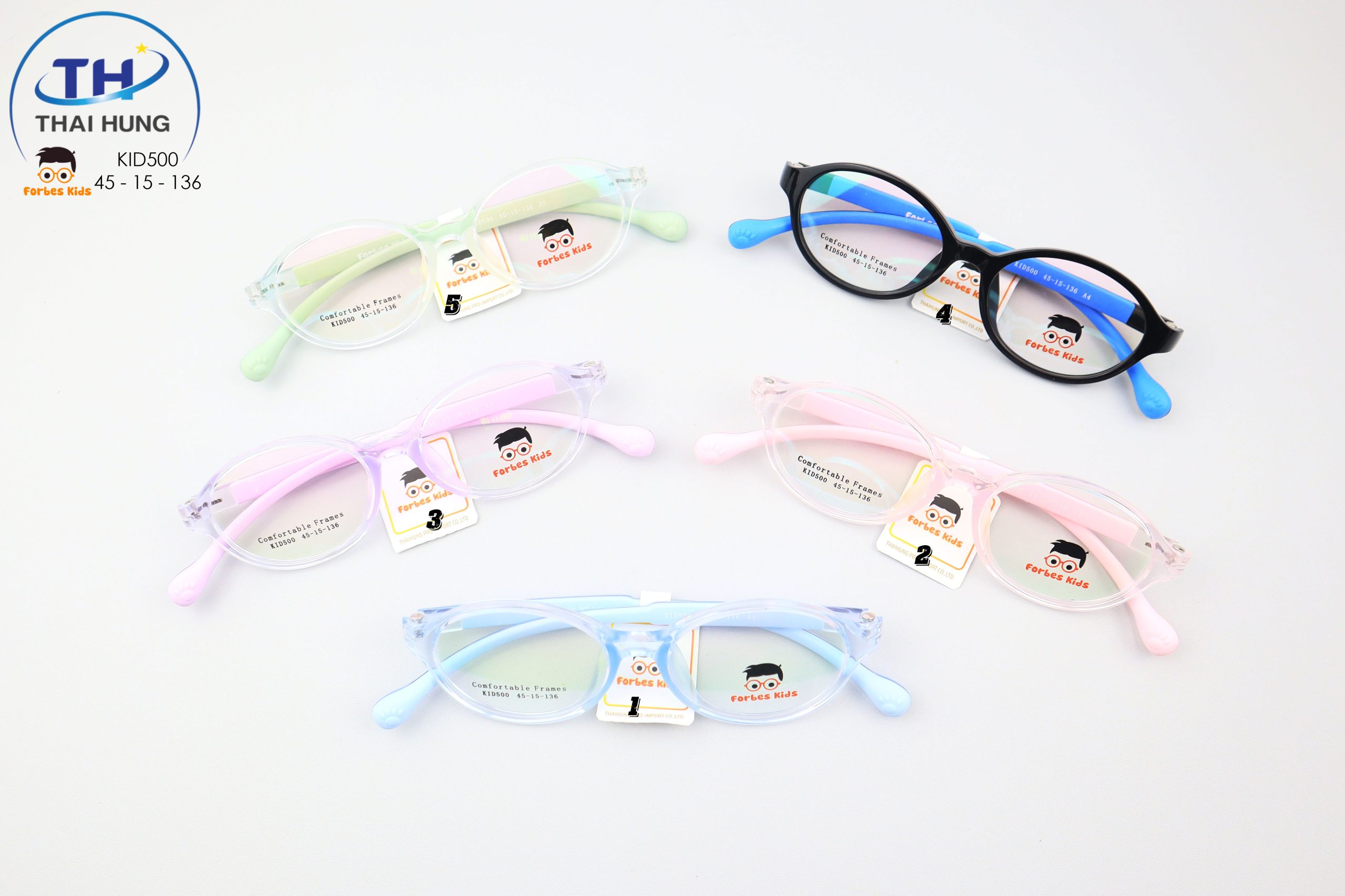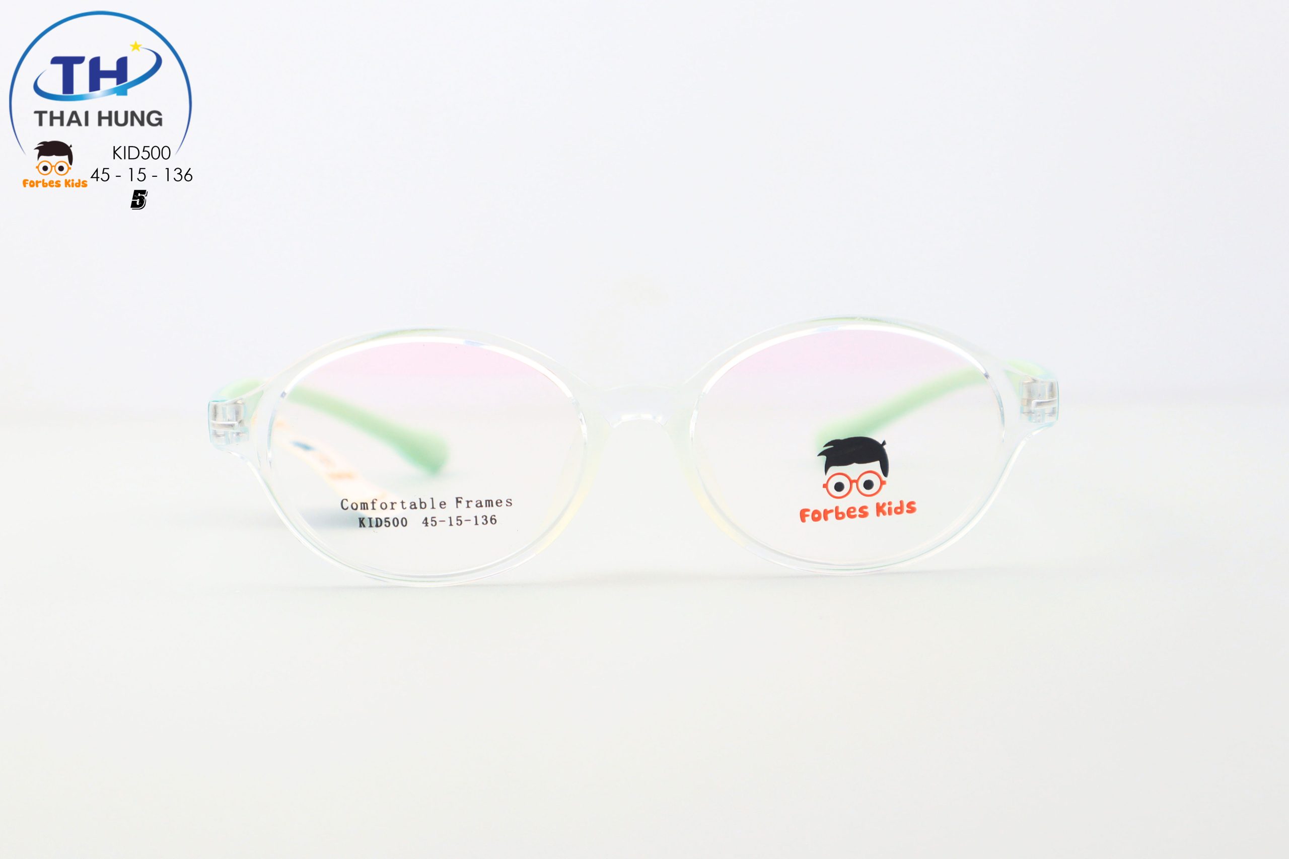 FORBES KIDS KID500 sử dụng đa dạng chất liệu gọng kính cho trẻ em, trong đó phổ biến nhất là nhựa TR90: